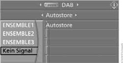 Wird auf der linken Seite des Control Displays "Kein Signal" angezeigt, kann gerade kein Sender empfangen werden.