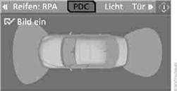Die Anzeige wird am Control Display eingeblen det, sobald PDC aktiviert wird.