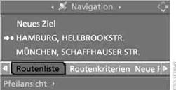 Während der Zielführung können Sie sich die Straßen und Orte auf der Route anzeigen lassen.