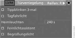 Das Tagfahrlicht leuchtet in der Stellung 3, bei Xenon-Licht * auch in der Stellung 0. Bei Xenon-Licht hat es eine geringere Lichtleistung als das Abblendlicht.